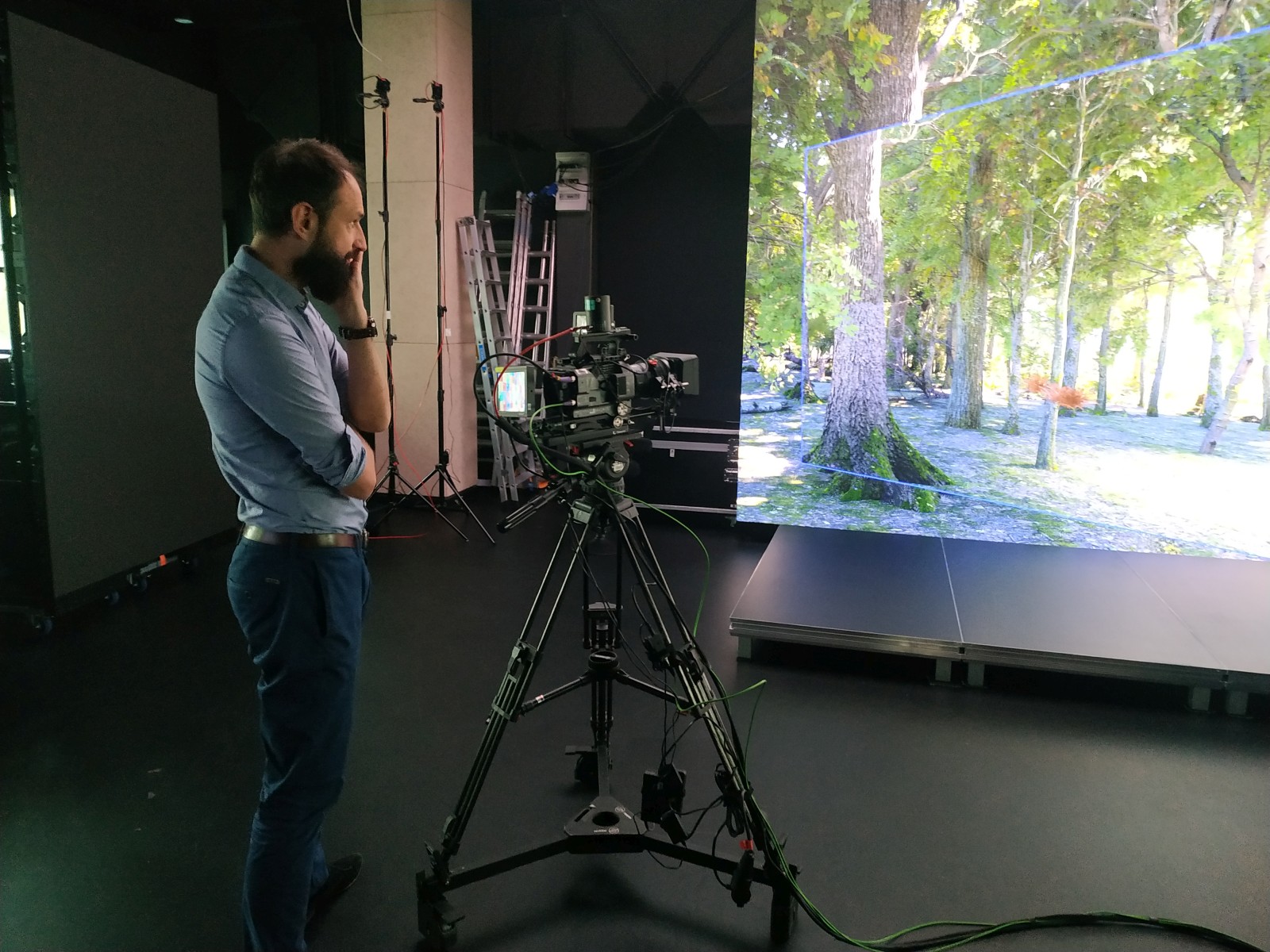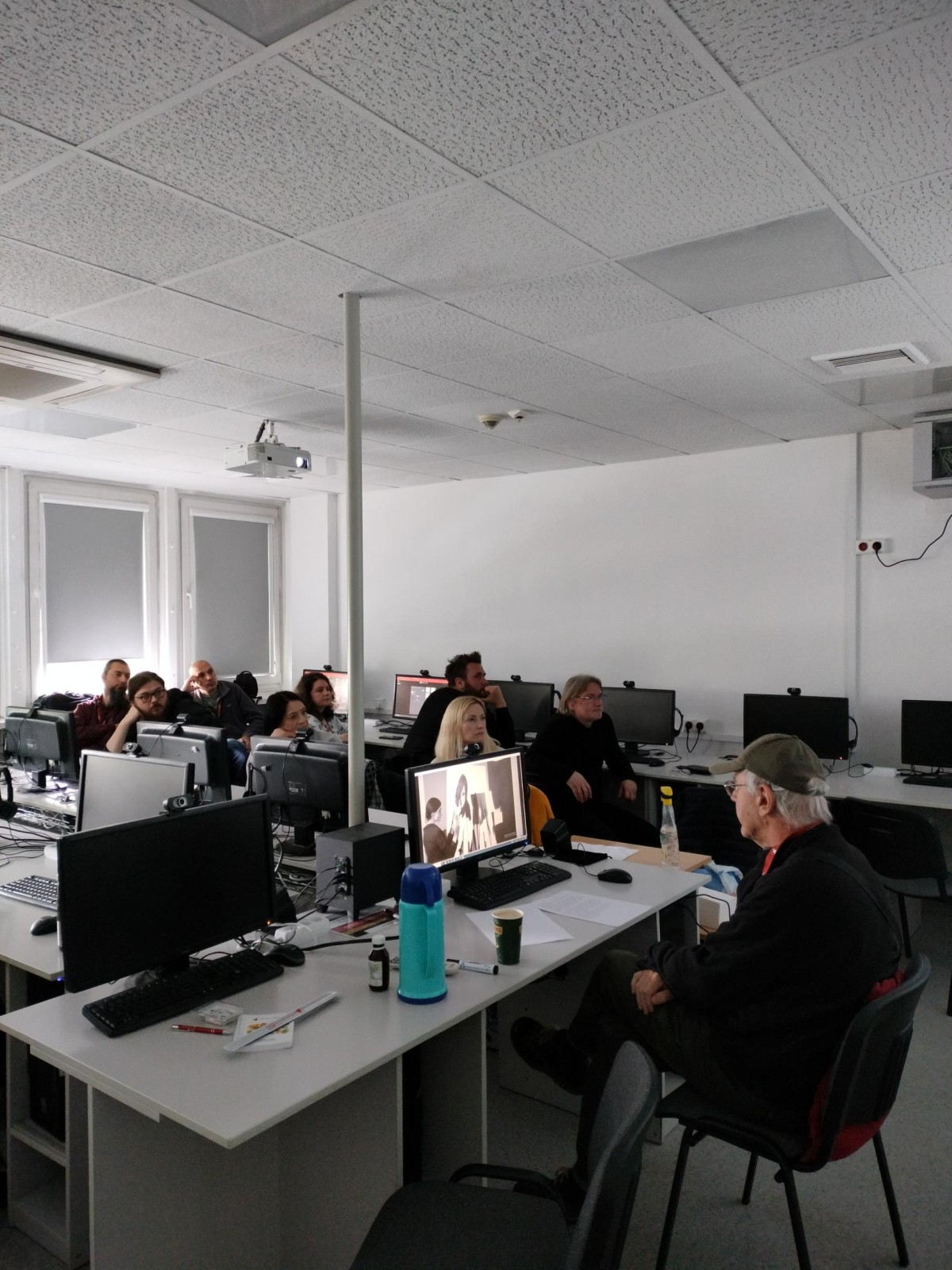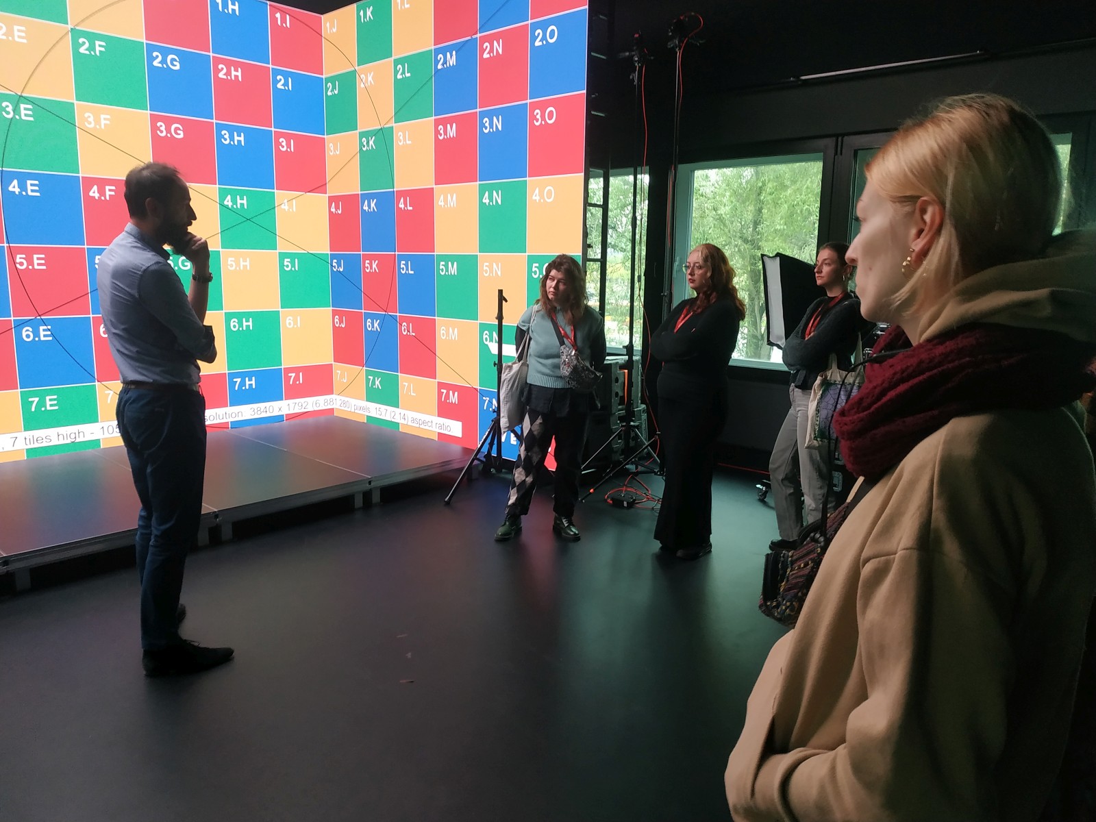 Goście zwiedzali nasze kampusy i Galerię WIT, a wizyta w Veles Production dostarczyła fascynujących wrażeń: była okazja zapoznać użytkowników z obecnymi trendami wykorzystania narzędzi do wizualizacji 3D oraz systemów opartych o AI w produkcji filmowej (filmy, krótkie formy, reklamy), wizualizacji na potrzeby projektowania wnętrz, wirtualnej scenografii. Uczestnicy poznali najnowocześniejszy sprzęt - wideo wall firmy RAW, system śledzenia i automatycznego motion capture (bez użycia znaczników!). Prezentowane było także porównanie zalet i wad wideo wall i greenboxa, a także zastosowanie dystorcji obrazu w celu jego prawidłowego wyglądu w kamerze. Pokazano także metodę w jaki sposób "działa" wirtualna scenografia w oparciu o Unreal Engine.