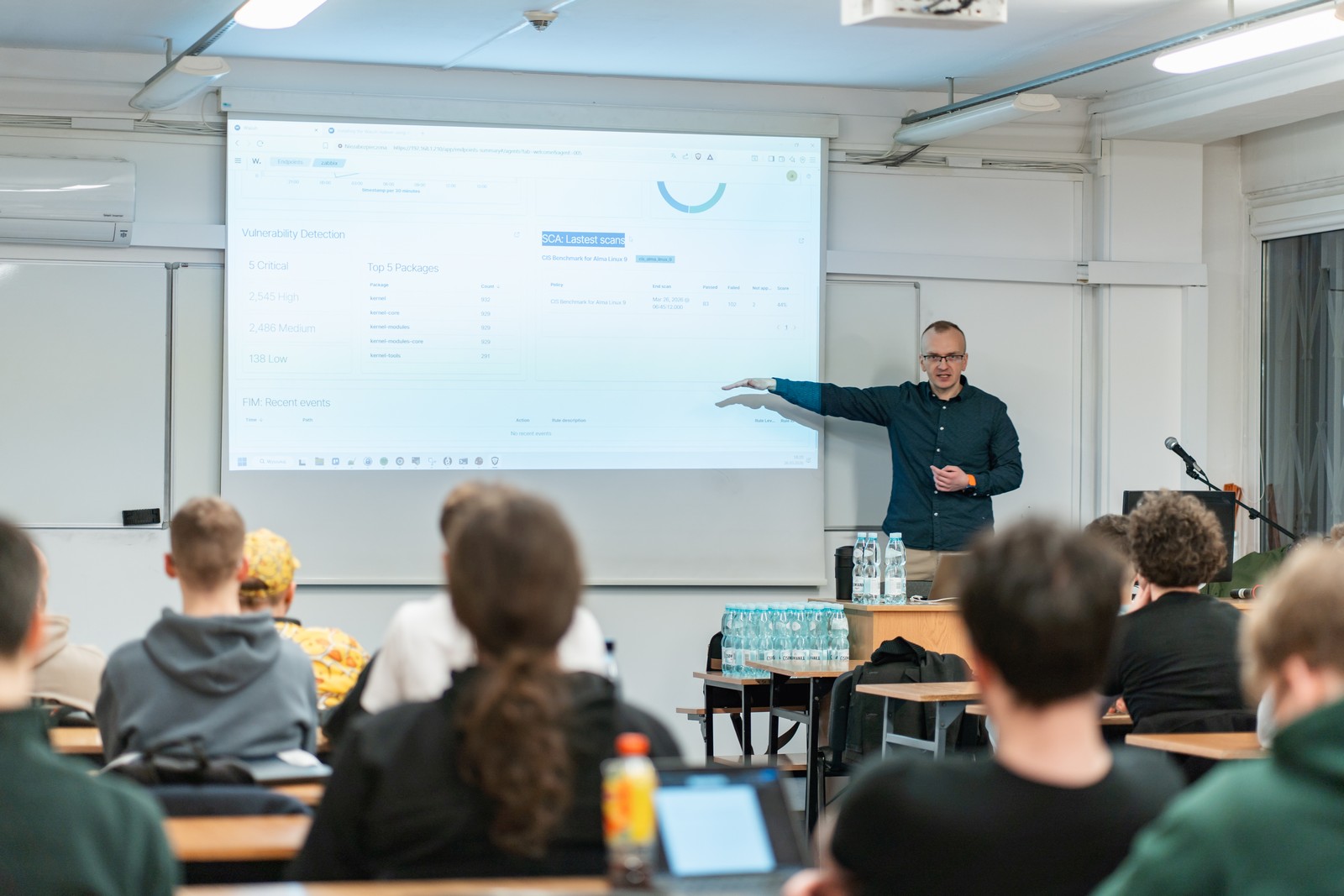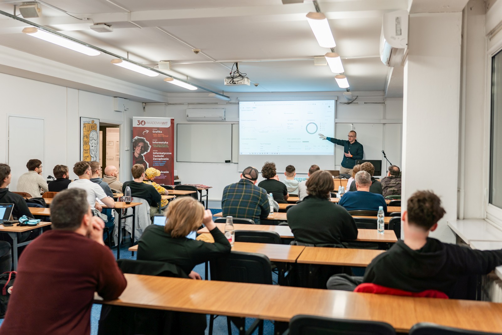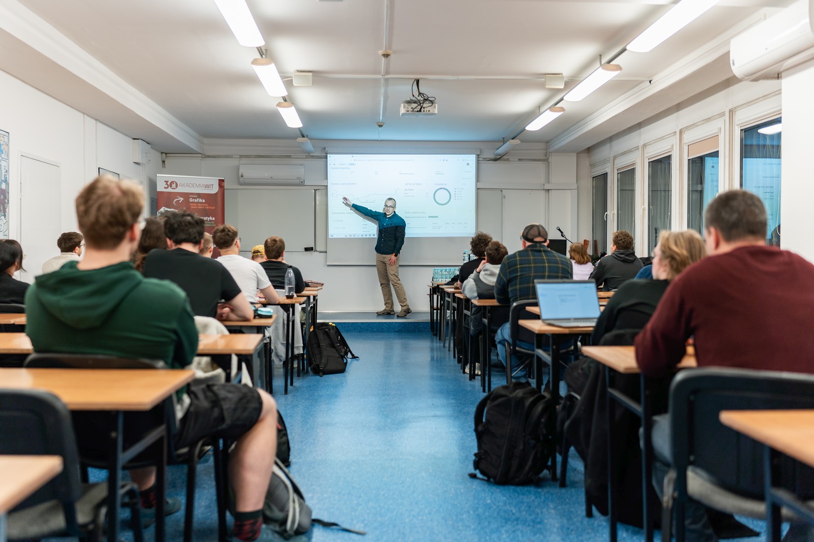Uczestnicy mieli okazję dowiedzieć się, jak wygląda praca specjalistów dbających o bezpieczeństwo systemów IT – od narzędzi i technik monitorowania sieci, przez wykrywanie zagrożeń, aż po realia codziennej pracy w tej dynamicznie rozwijającej się branży.