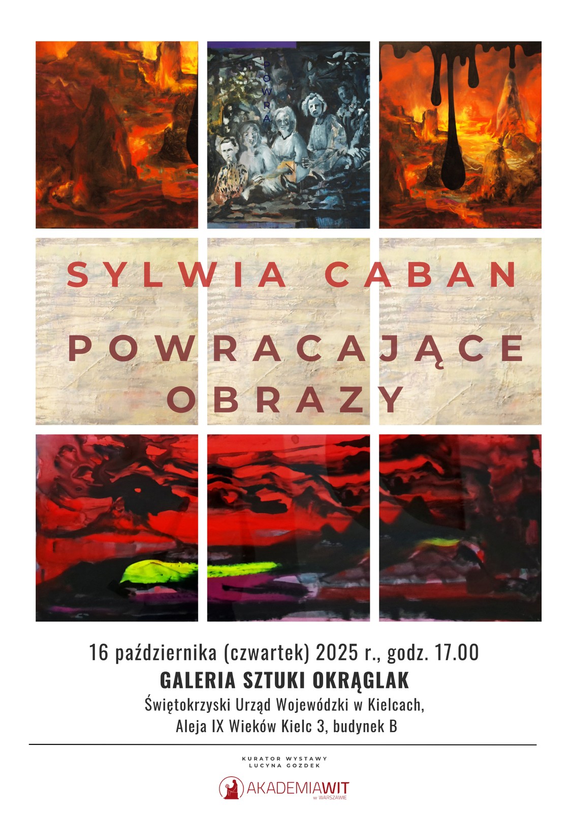 Wystawa malarstwa dr Sylwii Caban pt. „Powracające obrazy” otworzy się w 16 października 2025 r. (czwartek) o godzinie 17:00 w Galerii Sztuki „Okrąglak” w Urzędzie Wojewódzkim w Kielcach.